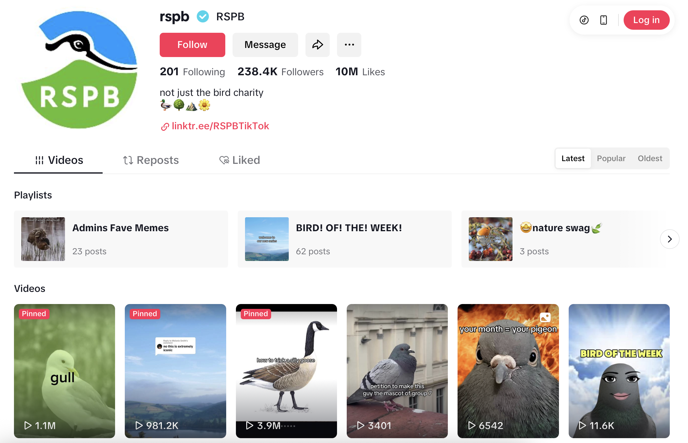 Then there’s RSPB, whose TikTok content is wonderfully unexpected, sometimes a little bizarre, but always engaging. They remind us that audiences want personality, vs polished case study type videos and that relevance often comes from experimentation.